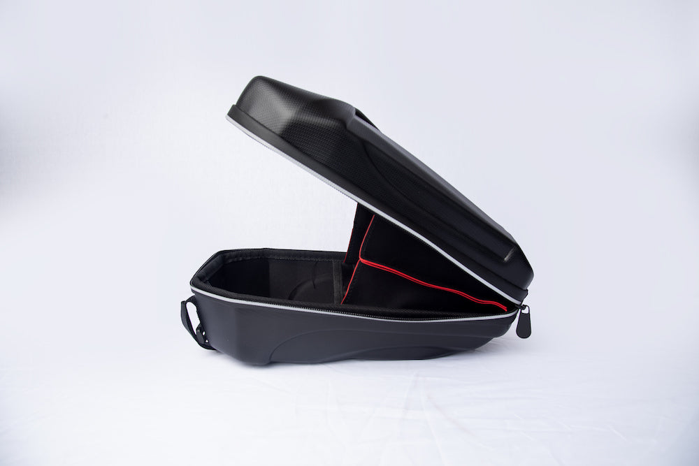 Praktische und bruchsichere Fronttasche für e-Scooter Trips bei jeder Wetterlage. Einfach und flexibel zu befestigen.